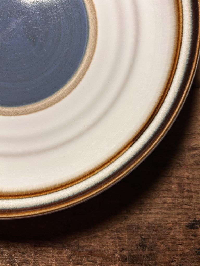 ハニワストーン シャーベットブルー×ベージュが珍しい。サンドイッチ?ケーキ?意外とトンカツ。径 270 高 25 在庫 3 @2.000-(税込)