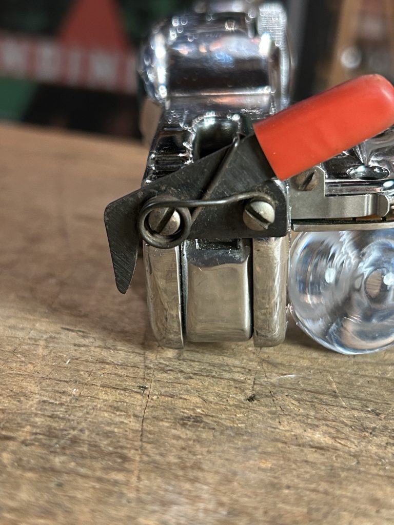 テスト打ちをし出すも、送りが上手く進まず字間が不安定でした。観察してみるとハンドルと連動するローラーが滑っていましたので、クリーニング 注油 &軽くヤスリを掛けしスムーズに送れるよう復旧しました。