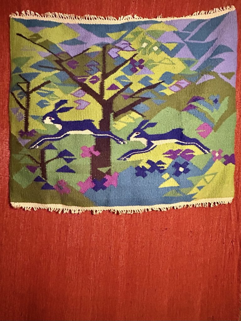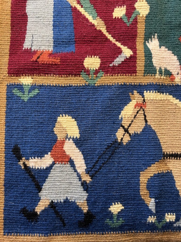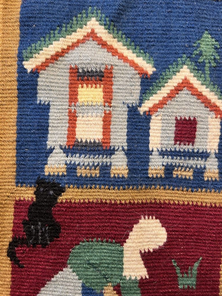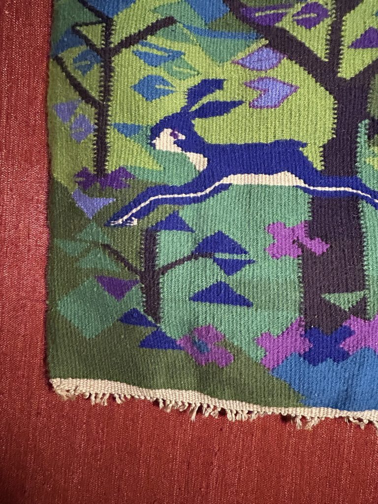 人気でした北欧テイストの枠付き作品と一緒に出てきていましたウール手織りのタペストリー。こちらは額装されていました物を手前にてクリーニングし整えました。一枚②の物に取りきれなかった汚れがございます、ちょっとお安めにどうぞ。詳しく調べ切れませんでしたが、こちらの一連も北欧由来の作品ではないかと思われます。もしかするとオリジナルでは無く写しかも知れません事ご了承下さいませ。
