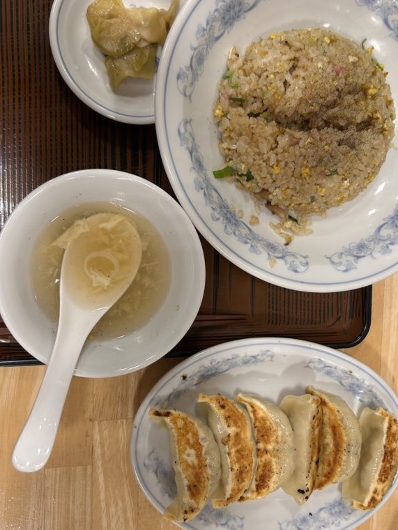 巨大スーパーで正月用ハムやらうっかり生イカ二杯とか購入、帰ってイカ捌かなければ。腹が減ったので帰り際に3割うまい 餃子の満洲実店舗へ 来店者の8割は高齢の方々(私含む)。いつもは寝不足故に高速道前の満腹は避けているのでちょっとラーメンも餃子も米もと欲張りたかったが、ミニラーメンセットみたいなあざとい選択肢は有りません。麺は諦めチャーハンと餃子セットにしまして 990-也。派手さは無いけど定番って良いですね、炒飯も美味し。