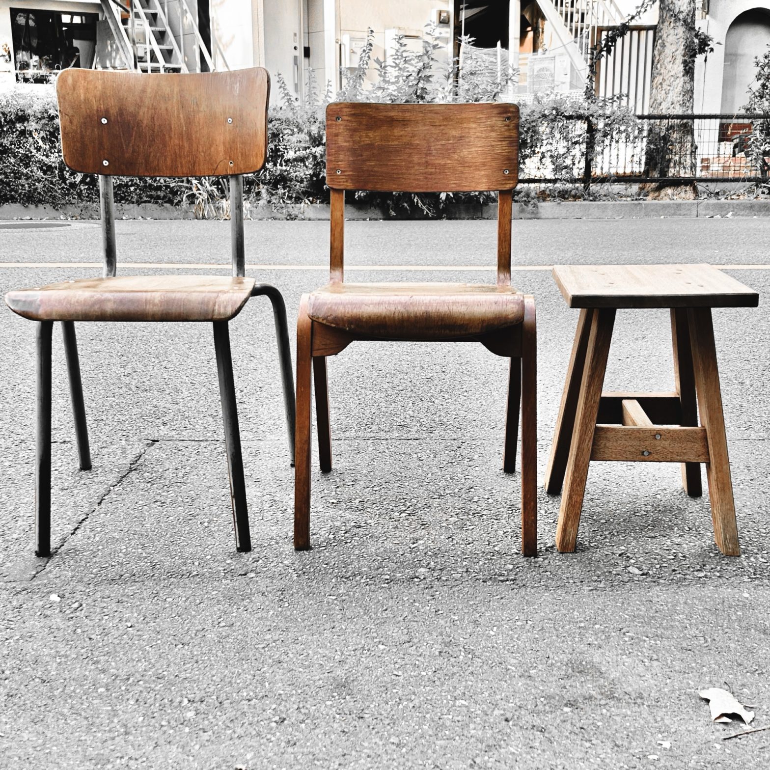 イギリス 欧州のスクールチェア2種とラワンの可愛らしい小台。