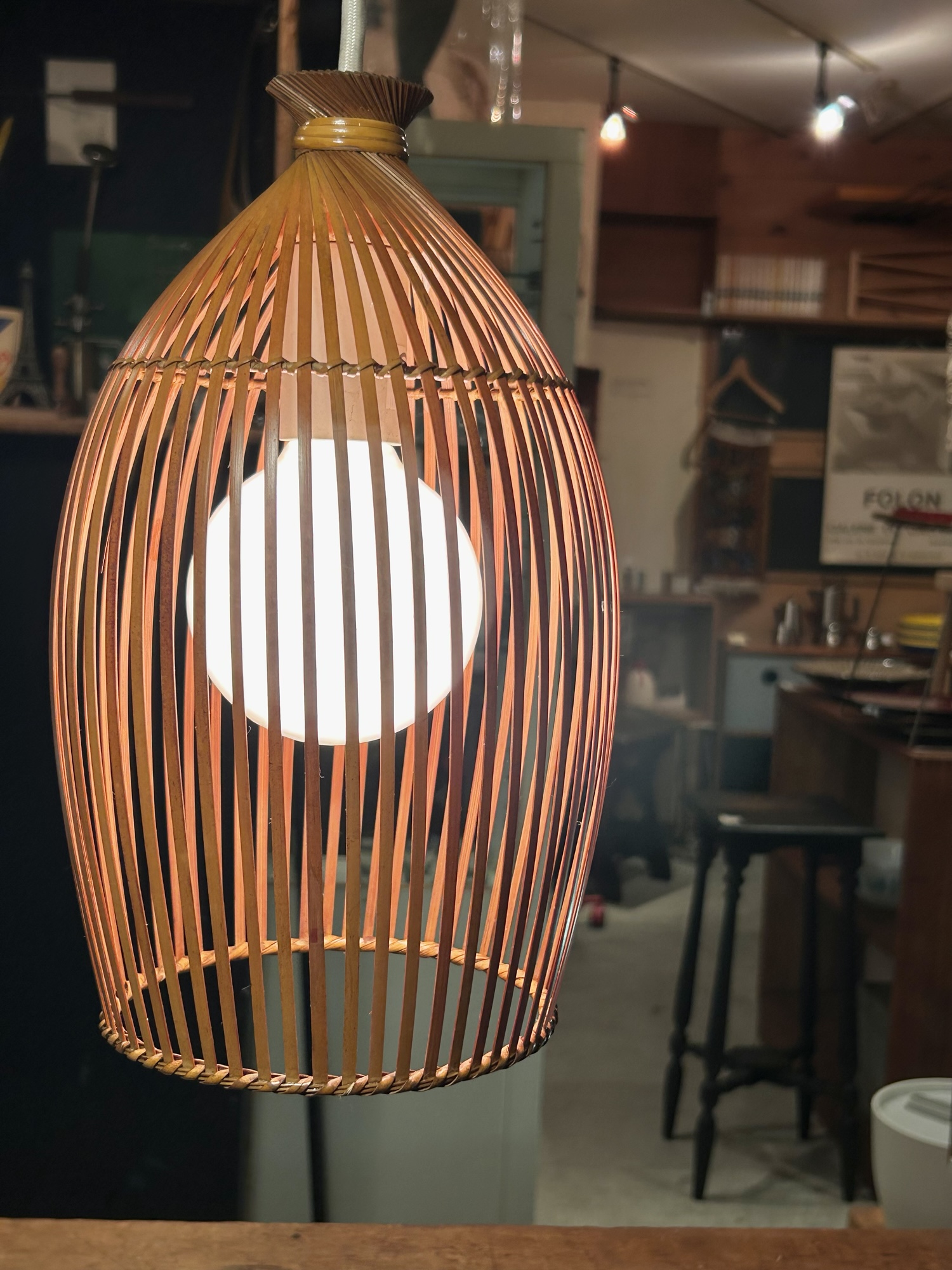 遅くなりましたが日曜日営業日でした。昨日もポストすっ飛ばしまして失礼致しました。どうやら風邪をひいた様で、ちょっと面倒な年末となっております。熱がないのが救いかどうか。明日明後日と漠然と在店を予定しておりましたが、とりあ… 続きを読む ナショナル製の竹材を組み上げたペンダントライト。そして年末年始の予定です。